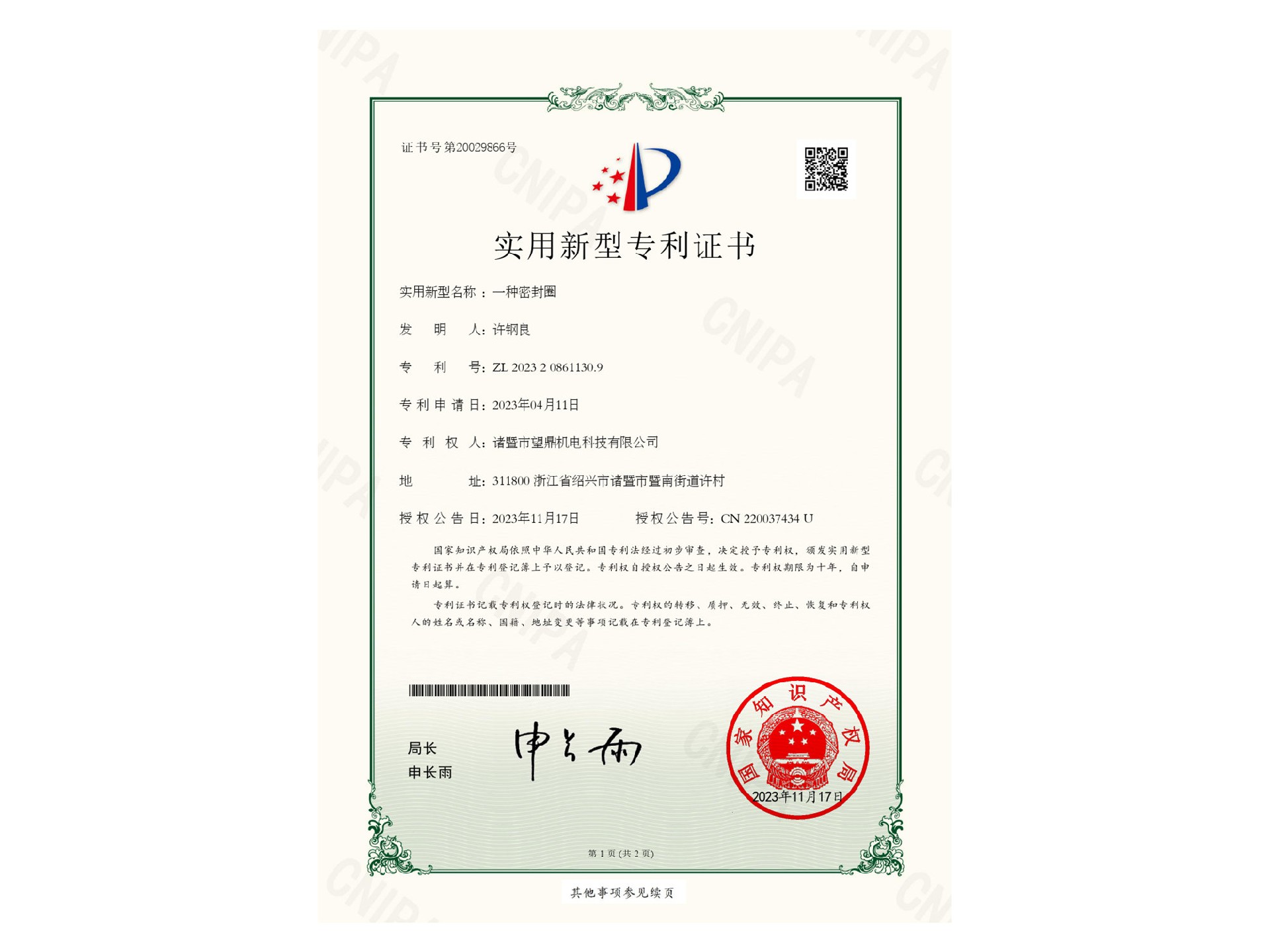 專利證書